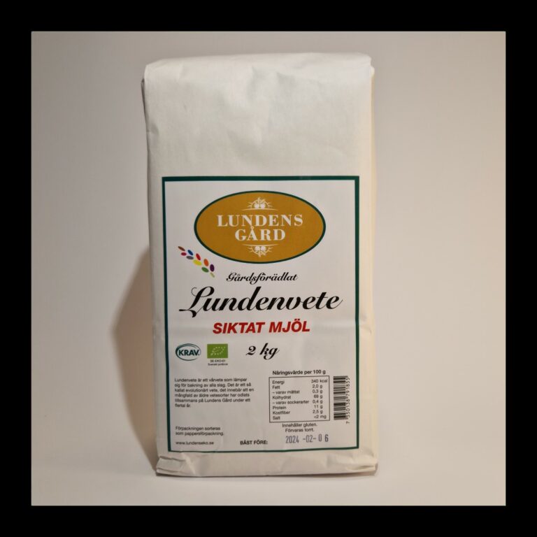 Siktat Lundenvetemjöl från Lundens gård är en högkvalitativ mjölsort som är perfekt för alla typer av bakverk och matlagning. Det är ett mjöl som är framställt av vetekorn som har malts och siktats för att avlägsna kornets yttersta skal. Det ger en finare och mer lättarbetad mjölsort som är perfekt för allt från bröd till kakor och andra godsaker.Det är en rik och fyllig mjölsort som ger goda resultat i all typ av bakning.Siktat Lundenvetemjöl är rikt på fibrer och innehåller viktiga vitaminer och mineraler som är viktiga för en hälsosam kosthållning. Det är också en naturlig källa till antioxidanter som kan bidra till att skydda kroppen mot sjukdomar och infektioner.