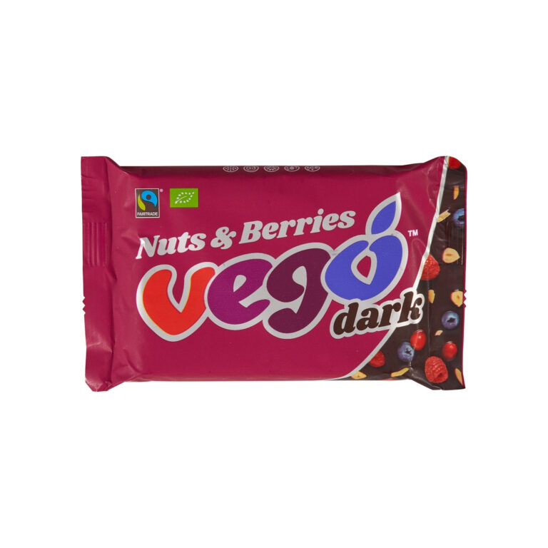Det här är speciell choklad! Inte bara för att baren är så välsmakande, men också för att chokladen är 100% vegetabilisk och är chock full av de godaste frukterna och nötterna. Du kan njuta av choklad, mandel, hasselnötter, blåbär, hallon och tranbär.